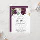 Cette invitation de réception de mariage aux floraisons violettes maussades est parfaite pour une fête moderne après une fugue amoureuse. Le design floral élégant présente des fleurs de tulipes violettes prune foncé et blanches avec des feuilles vert émeraude et des accents de feuilles dorées. Les cartes de RSVP sont vendues séparément, ou vous pouvez ajouter les informations de RSVP au verso de la carte.