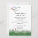 Cartons d'invitation de réception de mariage aux tourtereaux rose et bleu mignons. Des tourtereaux rose et bleu sur une branche avec des herbes et des fleurs en bas. Les informations de RSVP sont incluses au verso, mais si vous préférez un RSVP séparé, veuillez m'envoyer un courriel à shutterbug600@yahoo.com