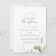 Cette invitation de réception de mariage avec verdure aérée et feuilles d'or est parfaite pour une fête moderne après une fugue amoureuse. Le design botanique élégant présente un eucalyptus aéré et léger à l'aquarelle rehaussé de feuilles de paillettes d'or fantaisistes. Les cartes de réponse sont vendues séparément, ou vous pouvez ajouter les informations de réponse au verso de la carte.