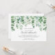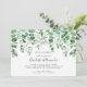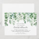 La réception de mariage en verdure seulement est un excellent moyen d'inviter vos amis et votre famille à célébrer votre mariage (privé, tribunal, à l'étranger, etc.). Ce design présente une chute de feuilles d'eucalyptus sur une carte horizontale. Veuillez consulter la collection pour les articles coordonnés et d'autres invitations parmi lesquelles choisir.