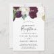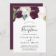 Cette invitation de réception de mariage aux fleurs violettes moroses est parfaite pour une fête moderne après une fugue amoureuse. Le design floral élégant présente des fleurs de tulipes violettes prune foncé et blanches avec des feuilles vert émeraude et des accents de feuilles dorées. Les cartes de RSVP sont vendues séparément, ou vous pouvez ajouter les informations de RSVP au verso de la carte.