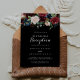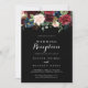 Cette invitation de réception de mariage botanique noir rustique est parfaite pour une fête classique après une fugue amoureuse. Le design présente des fleurs peintes à la main, radieuses et gracieuses, de couleur bordeaux, rouge, marine, bleue et rose pâle sur un fond noir, inspirant une beauté naturelle.