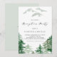 Invitation à une réception sur le thème de la forêt avec des arbres et des montagnes verts peints à l'aquarelle. Cette invitation rustique de la forêt est parfaite pour les événements de printemps, d'automne et d'hiver. Cela sera également parfait pour les événements sur le thème de la forêt. Des articles assortis sont disponibles.