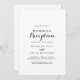 Cette invitation de réception de mariage de calligraphie moderne est parfaite pour une fête rustique après un mariage en fuite. Le design simple et élégant présente une typographie de script classique et chic en noir et blanc. Les cartes de réponse RSVP sont vendues séparément, ou vous pouvez ajouter les détails de RSVP au verso ou en bas de la carte.