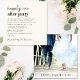Faire-part minimaliste moderne crème légère mariage et invitation à la réception. Le devant présente "Happily Ever After Party" dans un script contemporain et une typographie moderne audacieuse. Personnalisez votre invitation et ajoutez vos noms dans un script de type signature. Le verso présente votre photo mariage, vos prénoms et votre date de mariage.