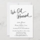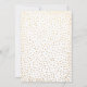 Dans ce design festif, j'ai utilisé une police de calligraphie moderne et tourbillonnante pour créer une superposition de typographie graphique indiquant "Nous sommes mariés". Remplissez les espaces vides du modèle avec les détails de votre événement de célébration pour personnaliser le design. Toutes les couches ont été ajoutées séparément et laissées déverrouillées afin que vous puissiez cliquer pour personnaliser davantage et repositionner le texte ou même changer les tailles ou les polices. Le dos de la carte était recouvert d'un graphique représentant des confettis dorés factices.