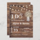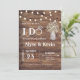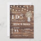 Invitation de réception de mariage BBQ. Une façon décontractée d'inviter vos proches à votre réception de mariage après une fugue ou une cérémonie privée. Avec un fond en bois de grange, des guirlandes lumineuses et du gypsophile dans un pot Mason.