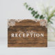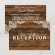 Un beau design rustique de campagne en bois de grange et dentelle pour ces cartes de réception de mariage que vous personnalisez pour votre journée magique à venir.