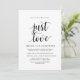 Ceci est la carte d'invitation de mariage en fuite, Rien de fantaisiste, juste de l'amour, dans un thème de design rustique moderne, avec une police noire.