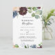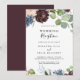 Cette invitation de réception de mariage floral et verdure de Bourgogne est parfaite pour une fête moderne après une fugue amoureuse. Le design élégant boho présente des fleurs de couleur marine aquarelle, rose blush et nuances vin avec des détails au crayon artistique.