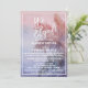 Cette carte de réception de mariage intime au coucher du soleil tropical est parfaite pour une fête après un mariage à destination ou sur la plage. Le design présente un coucher de soleil aquarelle rose, violet et bleu époustouflant avec un palmier qui se balance dans la brise. Les cartes de RSVP sont vendues séparément.