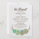 Cette carte d'invitation de réception de mariage en fuite bohème rustique avec fleurs et succulentes est parfaite pour un mariage en fuite sur le thème rustique campagne ou désert. Le design présente de jolies succulentes colorées vertes, roses et violettes disposées sur une couronne de branches et accentuées de confettis dorés faux. Les cartes de RSVP sont vendues séparément.