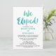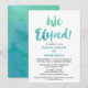 Cette carte d'invitation de réception de mariage sur la plage avec calligraphie à l'aquarelle est parfaite pour un mariage intime sur le thème d'une destination tropicale. Le design amusant et énergique présente une jolie police de caractères en écriture à l'aquarelle dégradée de vert sarcelle et de bleu aqua. Les cartes de réponse assorties sont vendues séparément.