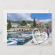 Invitation idéale pour les couples qui se marient en Croatie, qui veulent célébrer leur mariage avec leurs amis et leur famille à leur retour. Beaux bateaux dans le port et le ciel bleu photo image et tourbillonner en forme de coeur