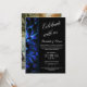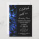 Une invitation moderne de célébration de mariage personnalisée noire et bleue avec motif floral après le mariage.