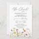 Fêtons ton élévation ! Des fleurs sauvages colorés et des papillons créent un design botanique et rustique pour vos invitations de mariage. Des fleurs jaunes, oranges, roses et bleues dansent sur le fond. Les polices serif et cursive ajoutent à ce design magnifiquement classique.