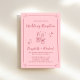 Invitation de réception de mariage rose et rouge inspirée du rétro tendance avec un cadre dessiné à la main de manière fantaisiste et des illustrations d'étoiles et de verres à champagne ornés de rubans coquets. "Réception de mariage" et les noms des mariés sont mis en valeur dans un script rouge amusant et ludique.