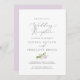 Cette invitation de réception de mariage rustique au lilas est parfaite pour une fête post-fuite amoureuse de printemps ou d'été. Le design floral romantique et élégant présente des fleurs sauvages de lilas violet aquarellées avec une ambiance de jardin campagnard bohème. Les cartes de réponse sont vendues séparément, ou vous pouvez ajouter les informations de réponse au verso de la carte.