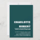 Invitez vos amis et vos proches avec ce faire-part de réception de mariage minimaliste élégant vert et texte blanc avec une photo des jeunes mariés au dos pour partager votre joie de votre mariage récent. Pour de meilleurs résultats, recadrez votre image choisie pour le verso de l'invitation à un ratio de 5 x 7.