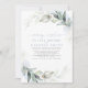Cartes d'invitation de mariage à réception de soirée bleue poussiéreuse avec verdure de rêve et calligraphie romantique