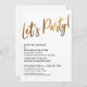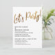 Invitez vos invités à votre célébration de mariage à l'aide de ces cartes d'invitation simples. Pour l'en-tête, j'ai utilisé une police manuscrite décontractée et moderne pour créer une superposition de typographie graphique indiquant "Let's Party!". Cette image a été embellie avec un effet de feuille d'or faux lisse pour un résultat festif. Remplissez les espaces vides du modèle avec vos informations pour personnaliser le design. Toutes les couches ont été laissées déverrouillées afin que vous puissiez également cliquer pour personnaliser davantage et repositionner le texte ou même changer les tailles ou les polices. Changez la couleur de fond selon vos préférences. Vous pouvez également choisir d'ajouter une image à l'arrière. N'hésitez pas à nous contacter pour obtenir de l'aide pour la personnalisation.
