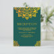 Carte de réception élégante avec une œuvre d'art géométrique de mandala élégante sur un fond sarcelle foncé.