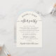Élégant étage crème en arc de cercle ou petit faire-part mariage et invitation à la réception. Le devant présente "Happily Ever After Party" dans un mélange de typographie simple et un script tendance avec des swashes, votre faire-part de mariage et d'invitation à la réception, et vos noms dans un script signature. Au dos, votre photo est superposée avec vos prénoms et votre date de mariage ou de réception, unis avec un coeur.