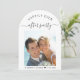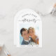 Élégant elopement en forme d'arc ou faire-part de mariage privé et invitation à la réception avec votre photo, "Happily Ever After Party" dans un mélange de typographie simple et de script chic avec des swashes, vos prénoms et date de mariage ou de réception réunis avec un coeur. Au verso, personnalisez votre faire-part et votre invitation et ajoutez vos noms dans un script de type signature.