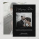 Annoncez votre réception avec notre Chic Réception Only Mariage Black Invitation. Avec un script élégant et une touche de minimalisme moderne, cette invitation est parfaite pour les fêtes d'après-elopement. Partagez votre joie et votre magnifique photo en noir et blanc, en déclarant "Nous nous sommes mariés !"