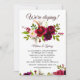 Cette simple carte d'accueil en velours bordeaux est parfaite pour une soirée post-elopement moderne. Le design élégant et radieux bordo illustré comprend des fleurs élégantes, pêche, rouge foncé, rose, blanche, aquarelle, bordeaux et immaculées, soigneusement groupées en un bouquet étonnant sur un lit de verdure ravissant. Les cartes RSVP sont vendues séparément.