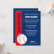 Invitations modernes de baseball rouge et bleu sur le thème Bar Mitzvah. Personnalisez facilement votre événement.