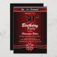 Une vibrante invitation à la fête du 30e anniversaire rouge et noir avec un texte blanc et un ruban rouge et blanc et un arc. Remplacez les détails de cette invitation par les vôtres pour créer l'invitation de fête d'anniversaire parfaite pour votre événement.