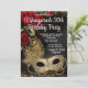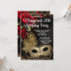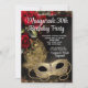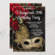 Invitation à la mascarade rouge et or avec un joli masque de bijou en or et des plumes sur un arrière - plan floral rouge et or. Vous pouvez personnaliser le numéro selon vos besoins pour votre événement - ceci est une invitation numéro d'anniversaire. Cette invitation à la mascarade rouge est facilement customisée pour votre événement en ajoutant simplement les détails de votre événement.