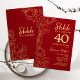 Red Gold Surprise 40th Birthday Invitation. Le minimaliste design féminin moderne présente des accents botaniques et des caractères typographiques. Carte invitation florale simple parfaite pour une célébration anniversaire surprise femme élégante.