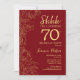 Red Gold Surprise 70th Birthday Invitation. Le minimaliste design féminin moderne présente des accents botaniques et des caractères typographiques. Carte invitation florale simple parfaite pour une célébration anniversaire surprise femme élégante.