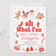 Red Retro Noël Oh What Fun 1st Birthday Invitation Police rouge en tête de Noël thème oh quelle amusante invitation d'anniversaire avec un renne, Père Noël, maison de pain d'épices, homme de pain d'épices, cadeaux, bas de Noël et plus. Idéal pour un oh quel plaisir fête de premier anniversaire.