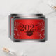 Une carte rouge et argent de remise de diplômes invitant les amoureux à honorer un merveilleux diplômé lors de leur journée spéciale de célébration.