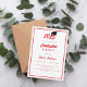 Une invitation moderne et design à la remise des diplômes. Pour lui et elle. Arrière - plan blanc, texte rouge et cadre. Une casquette noire de graduation.
