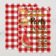 Un en vichy rouge et blanc classique est l'arrière - plan de cette invitation à la fête estivale animée avec du texte surligné en noir et jaune avec un hamburger et une pastèque pour aiguiser l'appétit de vos invités. Invitation de partie entièrement personnalisable.