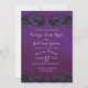Dentelle florale noire comme design et faire-part de mariage violet foncé gras et élégant avec police de style manuscrit, texte en argent.