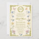 The front of the invitation features an ornate antique gold frame inspired by Regency filigree and old-world letterpress stationery. Delicate pastel watercolor florals, fluttering butterflies, and hand-painted vintage teacup illustrations surround the text, creating a romantic, heirloom-style aesthetic perfect for bridal showers, high tea parties, garden celebrations, or any elegant event. A refined monogram crest adds the perfect touch of aristocratic detail, giving the entire design a luxurious “old money” feel.