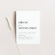 Si vous aimez le charme, cette invitation au style simple vous conviendra parfaitement. L'invitation présente un design élégant, avec un arrière - plan blanc. Au centre, les détails de la fête sont magnifiquement scénarisés dans une police noire, dégageant un air de sophistication. Bienvenue aux invités avec cette invitation unique à la fête. La couleur et le texte de l'Arrière - plan sont modifiables.