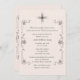 Un arrière - plan sable-coloré est équilibré avec une guirlande parallèle de feuillage et de lignes sinueuses artistiques et une croix en filigrane au centre. Ces couleur et conception neutres convient à n'importe quelle célébration religieuse et à l'un ou l'autre genre. br/>