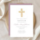 Invitation Religieux Croix violet Script Girl Baptême