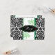 Cette carte de réponse de mariage dramatique en noir et blanc en damas comporte des accents de volutes vertes et une étiquette noire centrale qui correspondent à l'invitation de mariage présentée ci-dessous. Cette carte de réponse serait parfaite pour un mariage de printemps, d'été, d'automne ou d'hiver, et conviendrait également à d'autres événements formels nécessitant de la classe et du goût. Elle est présentée ici sur du papier de base. Le papier toile est également agréable, mais si vous voulez un papier plus épais, je suggère le papier métallisé glace, qui lui donnerait un beau lustre opalescent. ****VEUILLEZ noter que les papiers colorés (métal argent et or, feutre et tachetés) modifieront les couleurs du design. AUSSI, si vous redimensionnez la carte, ou si vous changez les polices, ou la taille de la police, une partie du design et/ou du texte risque d'être coupée. Tout s'imprimera comme vous le voyez sur votre écran. Je ne verrai pas votre carte, et Zazzle ne corrigera RIEN (fautes de frappe, alignement, etc.). Le texte et le papier sont entièrement personnalisables. Si vous