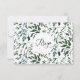 Carte de réponse RSVP | mélange et correspondance avec la collection de feuillages de feuilles de forêt émeraude des suites d'invitation de mariage. Floral aquarelle peinte à la main avec des feuilles de forêt émeraude et du feuillage. Le verso présente un motif de feuilles jetées avec une ouverture circulaire qui met en valeur le texte de calligraphie script : Rsvp. Copyright, Audrey Jeanne Roberts.
