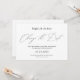 Annonce de report de mariage pour informer vos invités que la date de votre événement sera modifiée. Personnalisez avec vos propres mots - peut être utilisé pour tout événement, tel que mariages, douches de mariée, douches de bébé, etc. Caractérisé par une calligraphie simple. Personnalisez avec vos informations ou cliquez sur "Cliquez pour personnaliser davantage" pour modifier les styles de police, la taille et les couleurs.