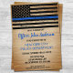 Cartes d'invitation pour la retraite de la police Thin Blue Line ou invitations pour la cérémonie de remise des diplômes de la police. Célébrez des années de service dévoué, ou célébrez votre nouveau diplômé de l'académie de police, et invitez vos amis et votre famille à votre fête d'application de la loi avec cette invitation de retraite de la police rustique en bois avec le drapeau Thin Blue Line et les invitations pour la cérémonie de remise des diplômes de l'académie de police - design de drapeau américain USA dans les couleurs du drapeau de la police, design en détresse. Cette invitation de retraite pour policier est également parfaite pour les invitations de remise des diplômes de l'académie de police, changez le lieu lors de la personnalisation. Consultez notre collection pour des cadeaux de retraite de policier assortis, des cadeaux de remise de diplôme de policier, des faveurs
