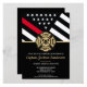 Cette conception présente un drapeau de sapeurs-pompiers avec des bandes noires et blanches, ainsi qu'une fine bande rouge. "Félicitations" et un badge de sapeur-pompier sont au-dessus de tous les détails de la fête pour la retraite du sapeur-pompier, du lieutenant ou du chef. Les invitations peuvent également être personnalisées pour un diplômé de l'académie de sapeurs-pompiers.