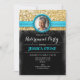Invitation à la retraite avec photo - Turquoise Blue Gold Black Design élégant en or parties scintillant et noir avec une pointe d'eau bleue. Parfait pour une fête de retraite pour femmes.